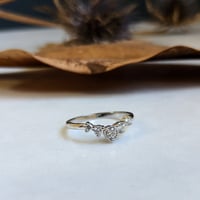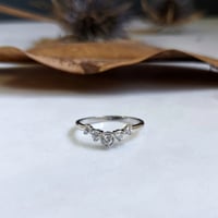 14-karat white gold, 1-2.7mm, 2-2.5mm, 2-2mm SI1-G white round brilliant diamonds. Total carat weight for this ring is 0.25cts.