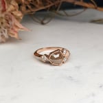 14-karat recycled rose gold, 1.29 carat peachy shield salt + pepper diamond, 4-2.5mm SI1-G round brilliant diamonds. The total carat weight for this ring is 1.53 carats.